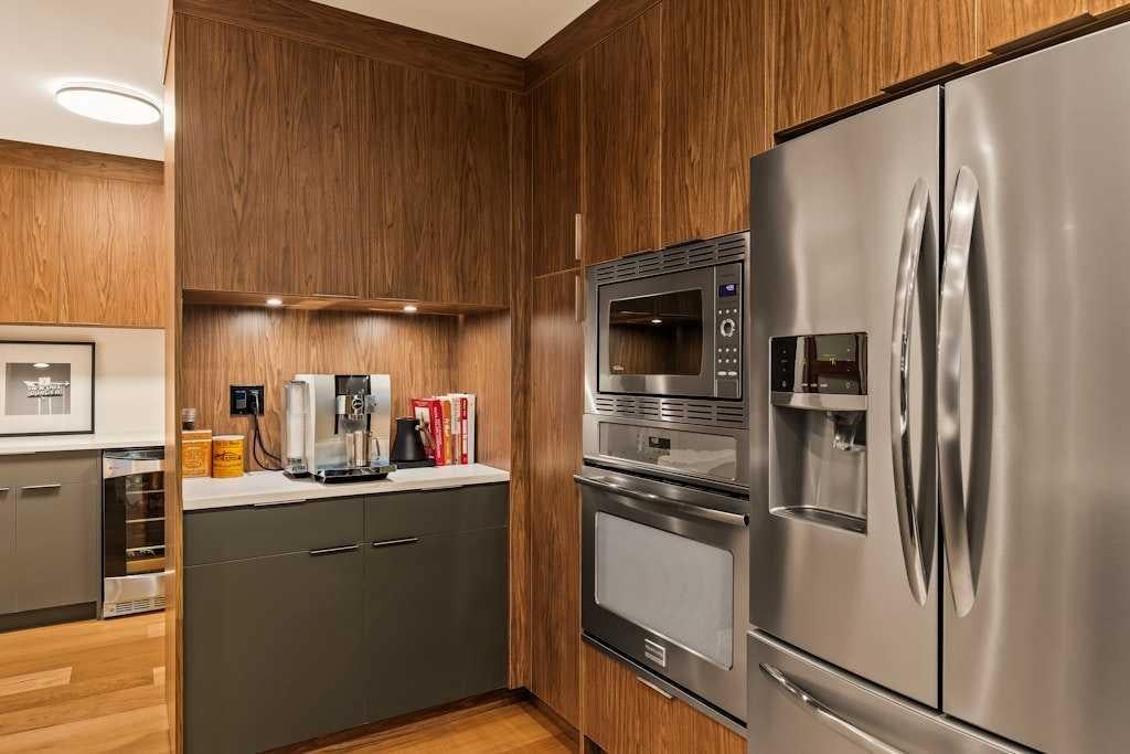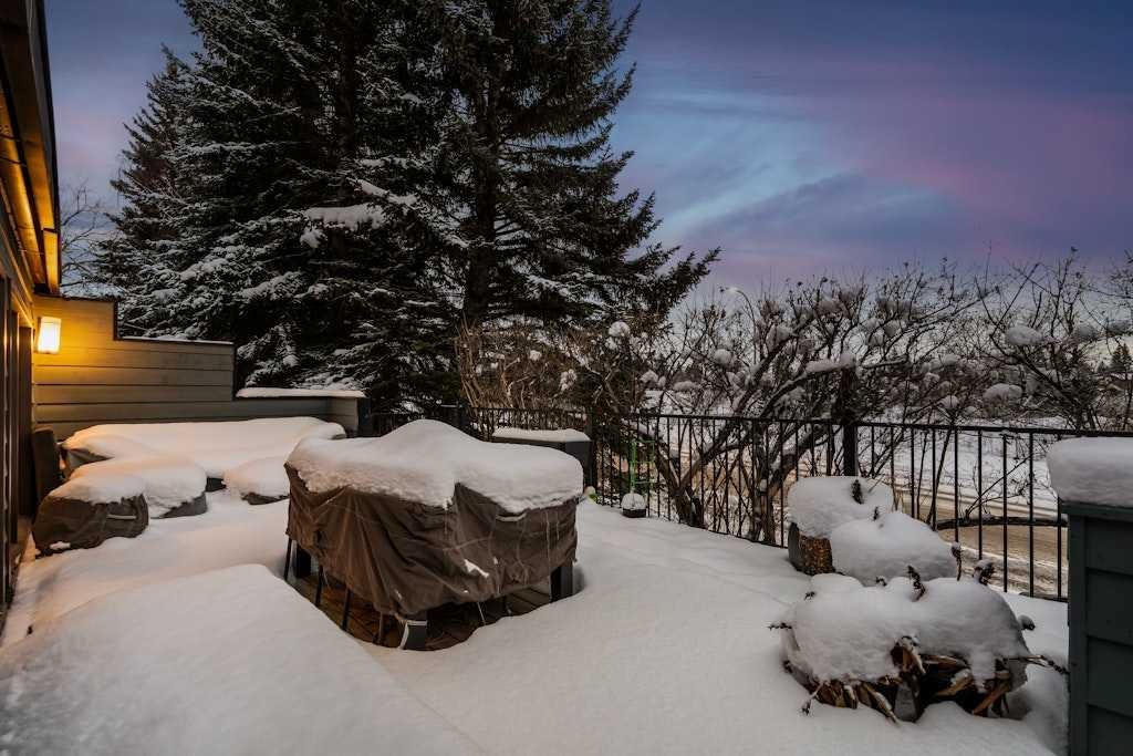 Set within an ultra-exclusive community of just 16 architect-designed units, this completely redesigned end unit offers a rare blend of privacy, sophistication, and golf course living. Conceived by architect Gordon Atkins, the complex is centred around a beautifully manicured green space and a discreet private drive, creating a sense of calm the moment you enter the community. Inside, the foyer opens onto the main living area, where the showpiece of the home immediately draws the eye: a dramatic double-level, wood-burning fireplace finished in brick, connecting the main and lower floor in one striking vertical line. Warm hardwood floors run throughout, while expansive windows frame views over Hole 2 and 3 on the Silver Springs Golf Course, bathing the space in natural light and highlighting the home’s connection to its surroundings. The completely updated kitchen feels polished and purposeful, designed for both everyday ease and elevated entertaining. Quartz countertops, a gas cooktop with a contemporary hood fan, stainless steel appliances, a wine fridge tucked inside the butlers pantry, and sleek cabinetry with under-cabinet lighting. An adjacent dining area provides an elegant setting for intimate dinners or casual gatherings. Thoughtfully tucked away on this level are the main-floor laundry room, complete with sink, and a refined 2-piece powder room. From the main living area, doors lead to a generous deck with a gas line for your BBQ, offering a comfortable outdoor space to dine or relax while enjoying the green space and golf course beyond. An open-riser staircase leads to the upper level, to discover the primary suite is a true sanctuary, with soaring ceiling lines, California shutters, and patio doors opening to a private south-facing balcony-an ideal spot for a quiet morning coffee in the sun. The 5-piece ensuite feels spa-inspired, featuring an oversized walk-in shower, separate soaker tub, dual sinks, and a generous walk-in closet. The second bedroom functions as an additional suite, complete with its own 4-piece ensuite, providing comfort and privacy for guests or shared living. On the lower level, large windows invite in an abundance of natural light, giving the space an above-grade feel. The wood-burning fireplace anchors a spacious recreation area, perfect for movie nights or relaxed evenings at home. There is also a dedicated office or hobby space, ideal for those who value a quiet, organized workspace. From this level, you step out to an expansive back deck with room for distinct lounging and dining areas, all set against the tranquil backdrop of mature landscaping and the golf course. The attached oversized double garage adds everyday convenience. The setting is every bit as special as the home itself. From here, you’re moments to the LRT, Market Mall, the University of Calgary, Foothills and Alberta Children’s Hospitals, parks, and extensive pathway systems along the Bow River. **OPEN HOUSE: Sunday, December 7th from 11:00 AM - 1:00 PM.**
